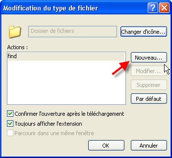 Dans la fenêtre Modification du type de fichier qui s'ouvre cliquer sur Nouveau...