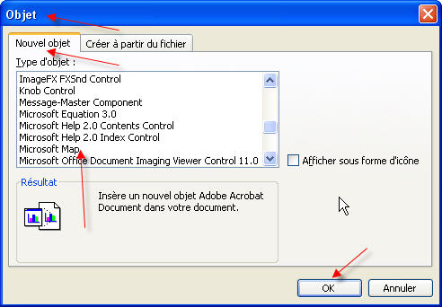 Datamap est alors installé et accessible depuis le menu Insertion > Objet... > Nouvel objet.