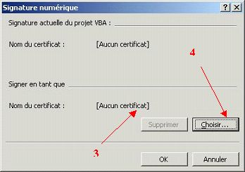 Outils Office puis sur Signature numérique pour les projets VBA. Dans la liste qui se déroule cliquer sur
