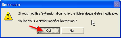 4 - Dans la fenêtre Renommer, confirmer la modification de l'extension en répondant Oui.